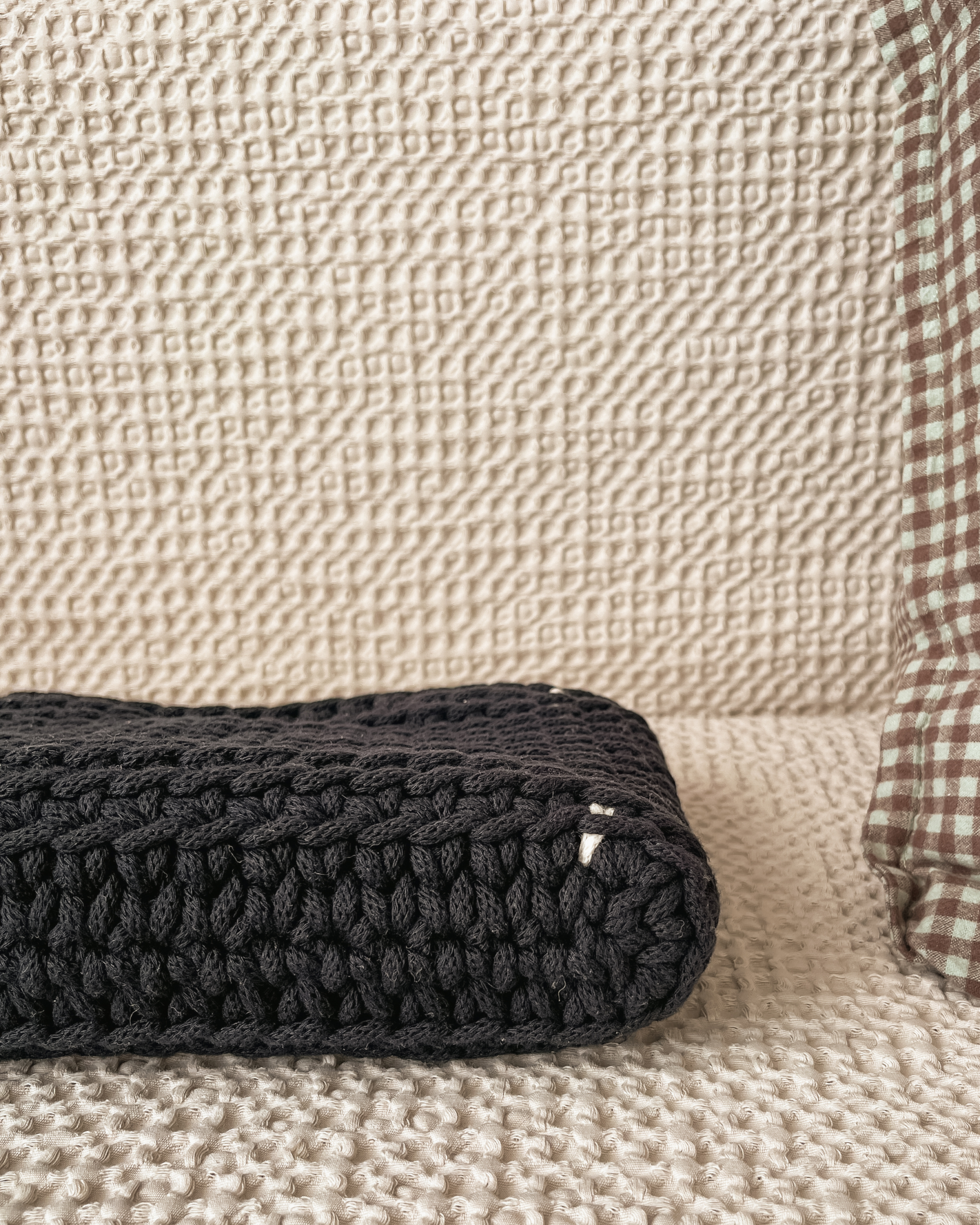 Structured, clean, and tactile in the best way. The cord holds its shape, the cut-out handle keeps the silhouette sharp, and the included cotton pouch gives the inside a finished, intentional feel.