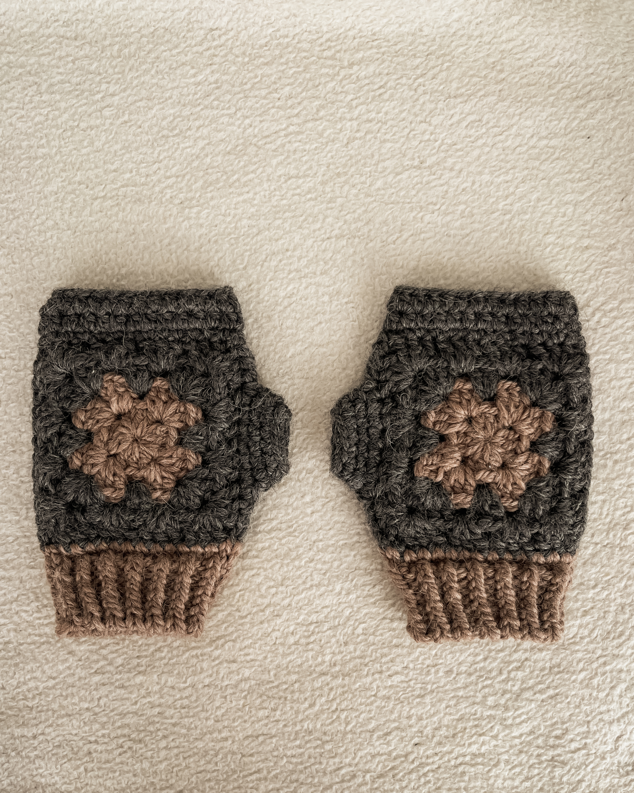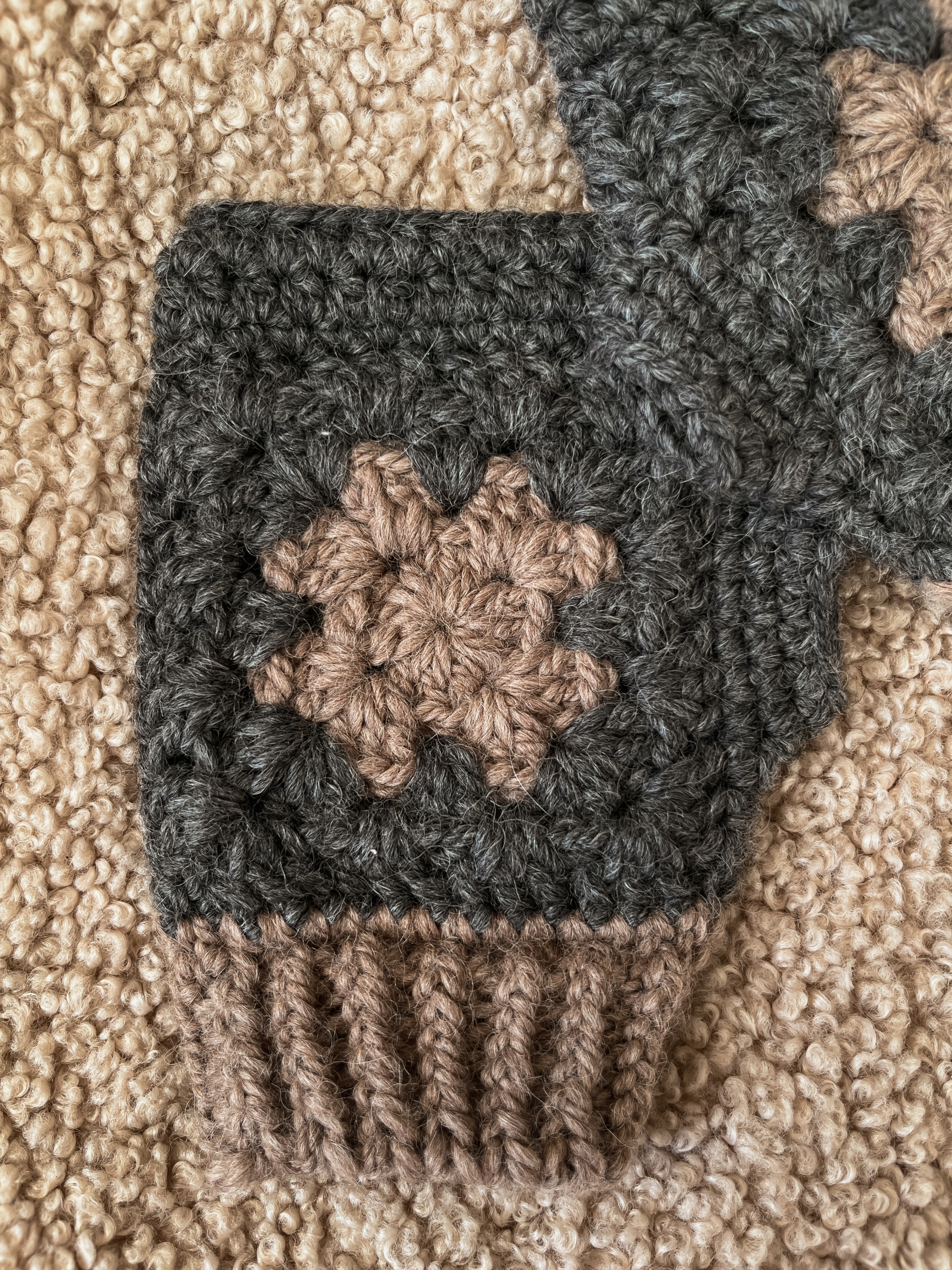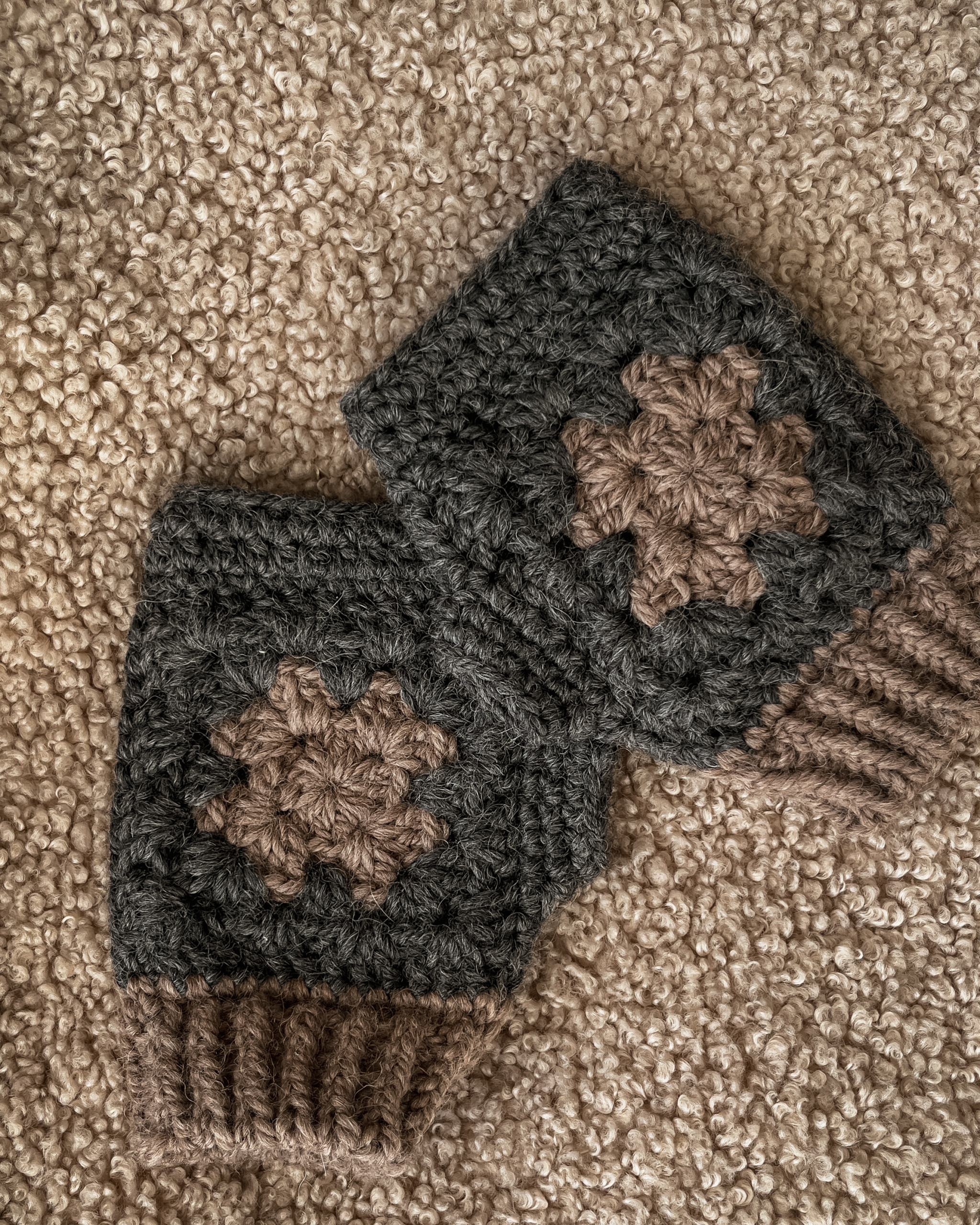 Chunky handwarmers with a comfortable thumb opening—warmth you can actually move in. Dark grey with taupe keeps it minimal and wearable, with a clean contrast that still feels soft.