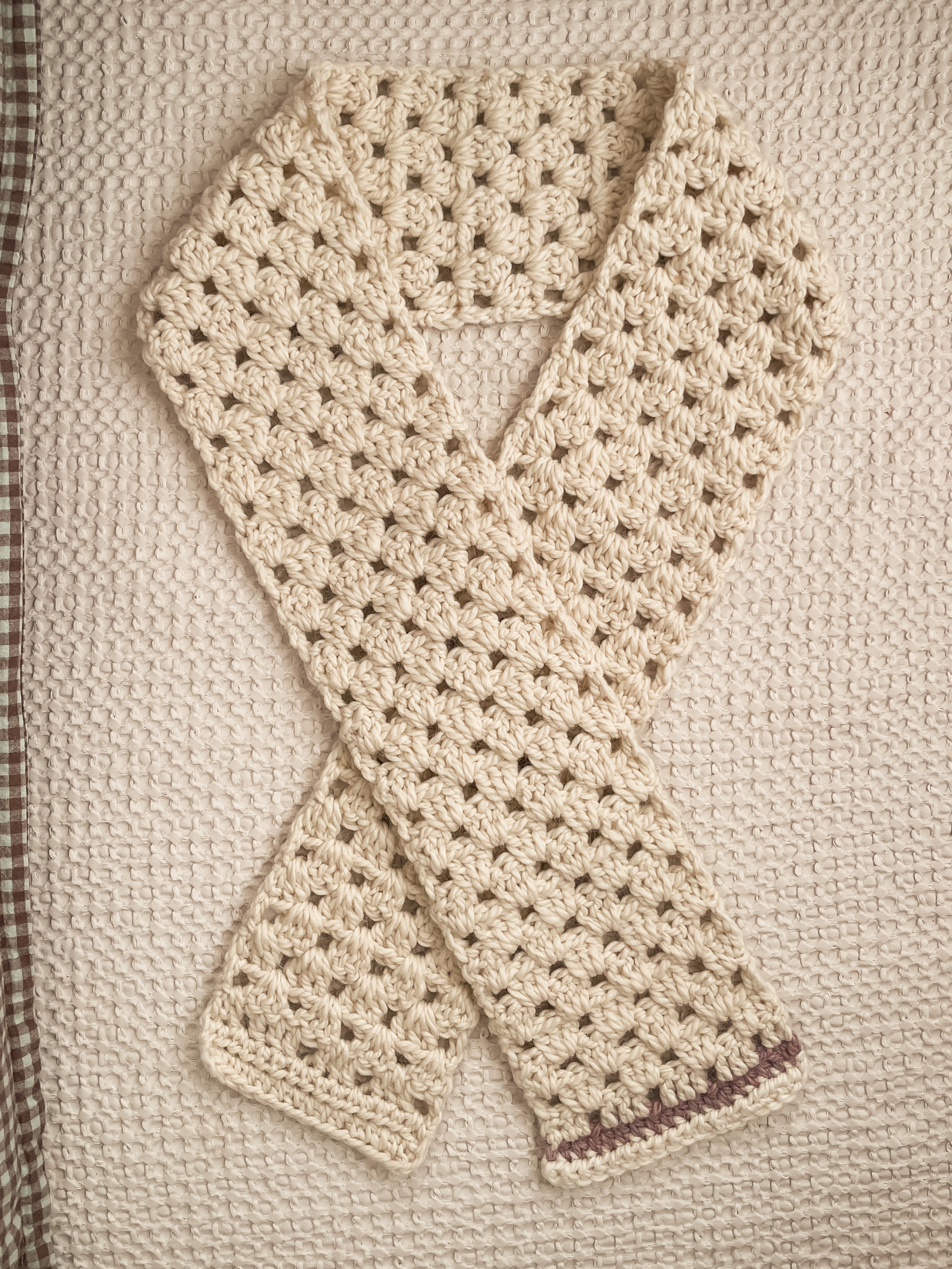 A long, slim scarf with an easy drape—warm enough to matter, slim enough to style without bulk. Cream keeps it light and wearable, finished with a dusty pink detail for a soft, intentional edge.